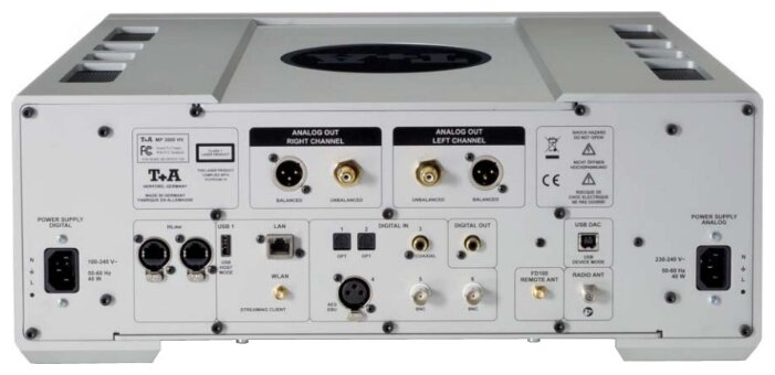 Support for AAC, OGG Vorbis, FLAC 192/32, WAV 192/32, AIFF 192/32, ALAC 96/24; Internet radio support; AES/EBU audio input; WiFi