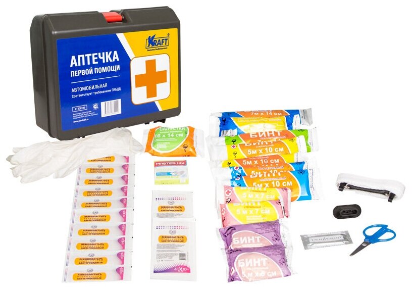 non-sterile bandages 5 m x 10 cm 2 pcs, non-sterile bandages 7 m x 14 cm 1 pc, sterile bandages 5 m x 7 cm - 2 pcs,