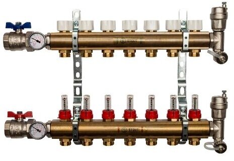 Distribution manifold STOUT SMB 0468 000003 made of brass without flowmeters 3 outlets