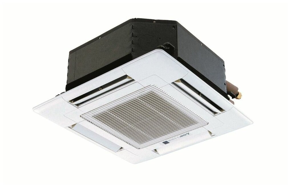 Type: indoor unit, indoor unit type: cassette, room area: 110 m², inverter, additional modes: ventilation, night, features: decorative panel included, remote control, on/off timer