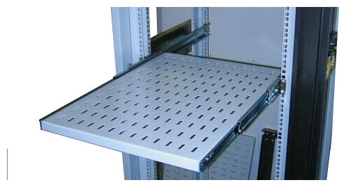 Perforated, retractable with telescopic rails, depth 620 mm.
