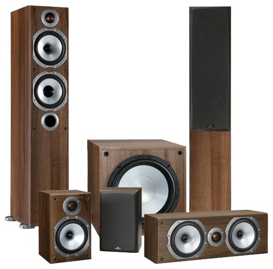 The set consists of 2 Bronze BR5 front speakers, 2 Bronze BR1 rear speakers, Bronze BRLCR center speaker and Bronze BRW10 subwoofer