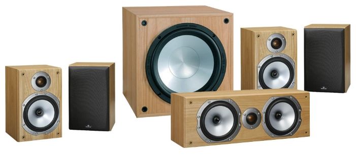 Set consists of 4 Bronze BR1 bookshelf speakers, Bronze BRLCR center speaker and Bronze BRW10 subwoofer