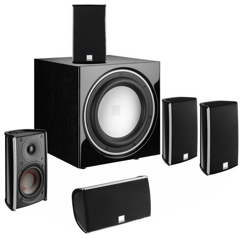 Set consists of 4 DALI FAZON MIKRO surround speakers, DALI FAZON MIKRO VOKAL center channel and DALI E-9F active subwoofer