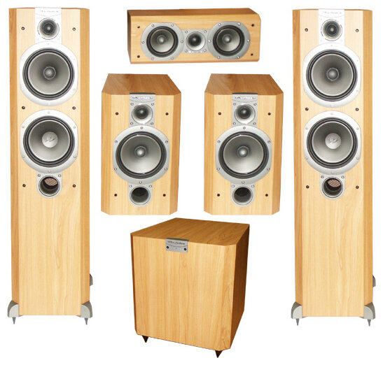 Wharfedale Vardus Vardus VR-300 floorstanding speaker, Wharfedale Vardus VR-C1 center channel, Wharfedale Vardus VR-S1 rear speaker and Wharfedale Vardus VR-Sub 8 subwoofer