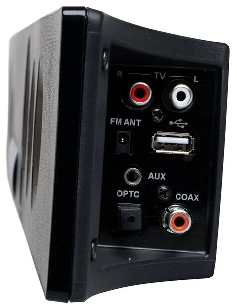 Stereo line-in, digital optical input, digital coaxial input, USB Type A
