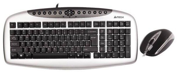 Connection interface: USB, color: silver, mouse type: optical LED, keyboard type: membrane