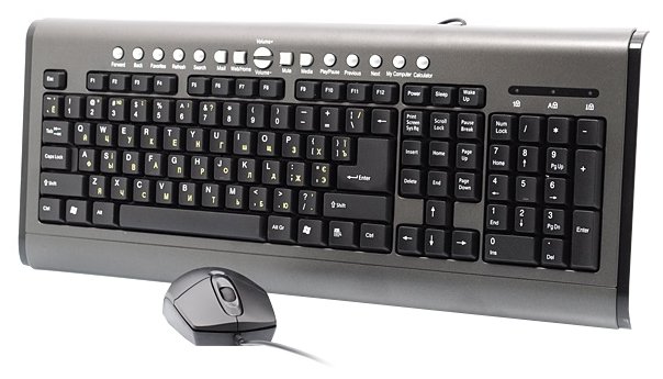 Connection interface: USB, color: gray, mouse type: optical LED, keyboard type: membrane