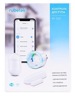 Sensors are connected to a Wi-Fi socket; to control via phone, you need to install the free mobile application Rubetek on iOS 11.0 version and higher or Android 5 version and higher