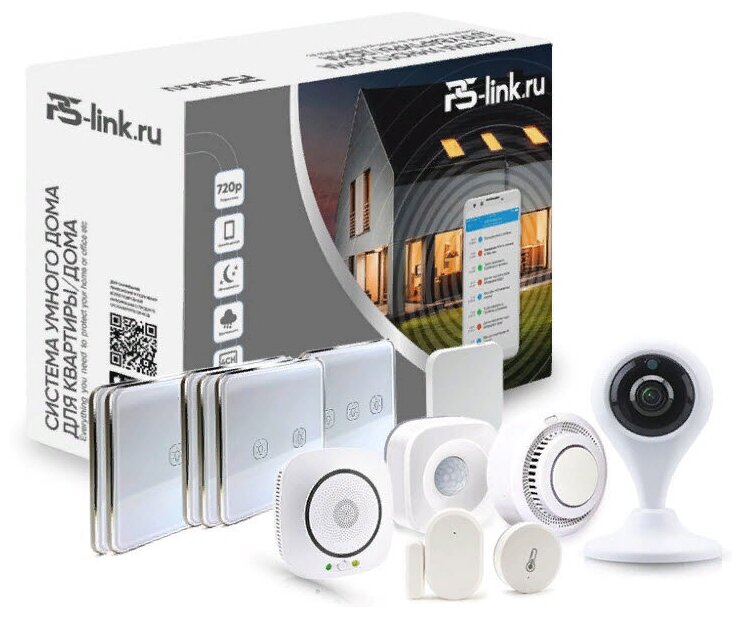 Ecosystem: Tuya Smart, equipment: wireless switch, gas sensor, motion sensor, smoke sensor, opening sensor, temperature and humidity sensor, video surveillance camera, gateway, number in the kit: 13 pcs., type of connection