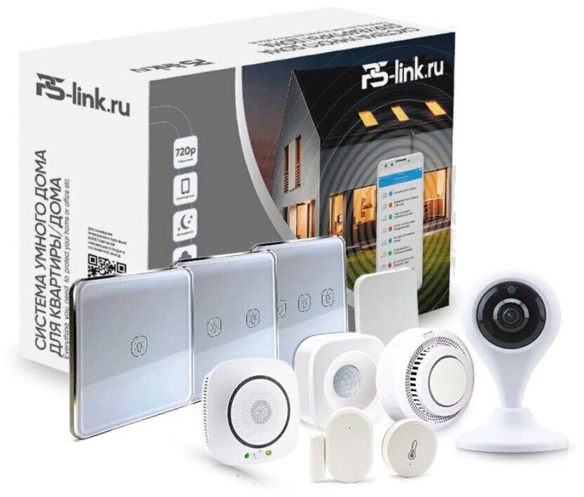 Ecosystem: Tuya Smart, equipment: wireless switch, gas sensor, motion sensor, smoke sensor, opening sensor, temperature and humidity sensor, video surveillance camera, gateway, quantity in the kit: 10 pcs., type of connection