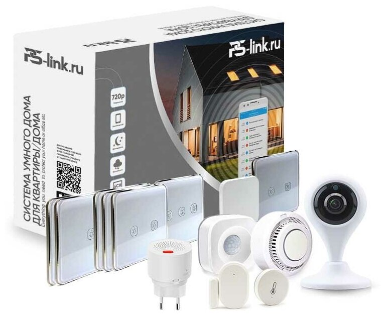 Ecosystem: Tuya Smart, equipment: wireless switch, gas sensor, motion sensor, smoke sensor, opening sensor, temperature and humidity sensor, video surveillance camera, control panel, gateway, quantity in the set