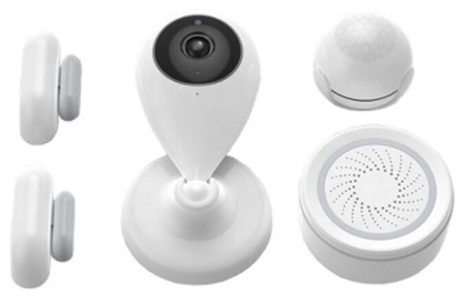 Ecosystem: IFTTT, Yandex Smart Home, equipment: motion sensor, opening sensor, video surveillance camera, siren, quantity in the set: 5 pcs., device connection type: wireless, communication protocol: Wi-Fi, detailed computer