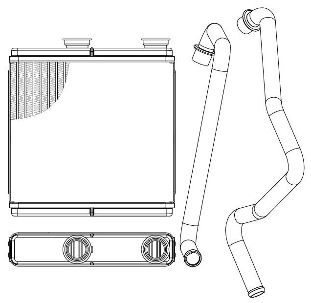 Heater radiator, Product data sheet, Tubes - 2 pcs., Clamps - 2 pcs., O-rings - 2 pcs.