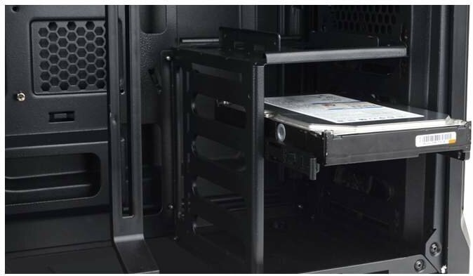 Screwless mounting of 5.25" devices; hot plug HDD optional; fan support - front: 120 mm x 2, top: 120 mm vent x 2, rear: 120 mm vent x 1; fans included