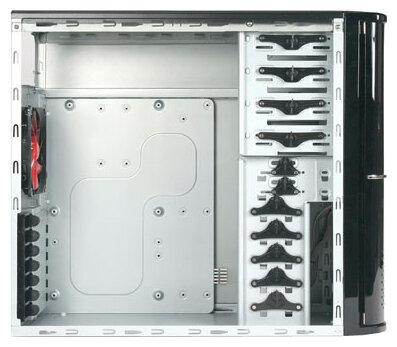 Size: Midi-Tower, motherboard form factor: ATX, Micro-ATX, window on the side wall, number of internal compartments 3.5: 5, width: 200 mm, height: 500 mm, depth: 440 mm, case color : black