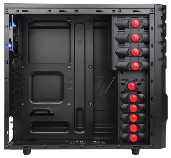 It is possible to install additional 120 mm fans, one on the front panel, two on the top and one on the bottom panels, one on the side cover, an 80 mm fan on the bottom panel under the HDD cage
