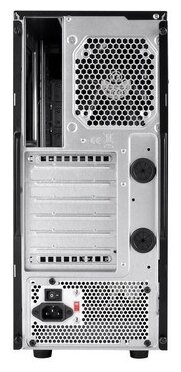Size: Midi-Tower, motherboard form factor: ATX, Micro-ATX, power supply, power supply power: 401 - 600 W, power supply at the bottom, presence of a window on the side wall, number of internal compartments 3.5: 5, number internal bays 2.5:1, USB