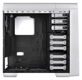 Adapter for installing an external 3.5 device into a 5.25 bay; space for a 120 mm fan on the bottom and two 120/140 mm fans on the top