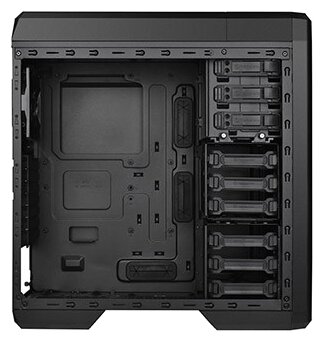 Space for two 120/140 mm fans on top and one 120 mm fan on the bottom; installing an external 3.5" drive via an adapter into a 5.25" bay