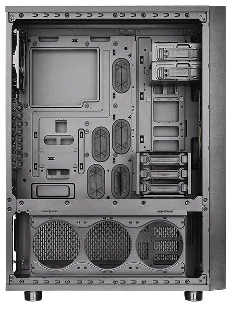 Space for one 120/140 mm fan in the front, for three 120/140 mm or two 200 mm - on top, for two 120/140 mm - on the bottom, for three 120 mm or two 140 mm - on the left or right; possibility of installing up to two 200 mm fans in the front; support