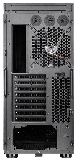 Space for two 120 mm fans at the bottom, for three 120/140 mm or two 200 mm fans at the top; support for cooling radiators; 3.5" bays are compatible with 2.5" media