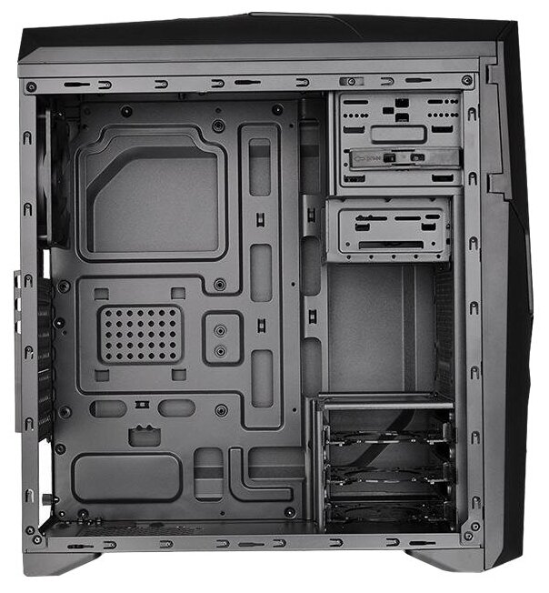 Space for 120 mm fans, two in front and top; support for cooling radiators; 3.5 bays are compatible with 2.5 media