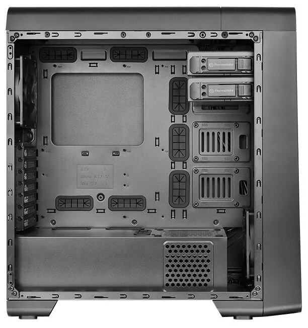 Space for a 120/140 mm fan in the front, two 120 mm fans on the top and one on the internal partition; support for cooling radiators; 3.5" bays are compatible with 2.5" media