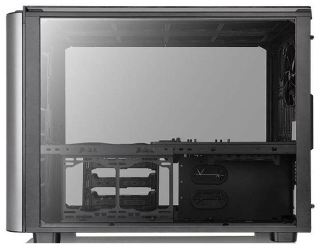 3.5" bays are compatible with 2.5" media; space for three 120 mm or two 140/200 mm fans at the front, eight 120 mm or six 140 mm or two 200 mm fans at the top, one 120/140 mm at the rear, three 120 mm at the bottom and four 120 mm or T