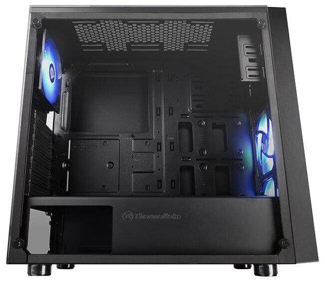 Space for a 120 mm fan in the front and two 120/140 mm fans on the top; the ability to install two 140 mm fans in the front instead of the installed 120 mm; 3.5" bays are compatible with 2.5" media; radiator support