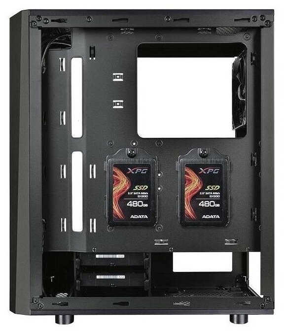 Space for two 120/140 mm fans on top, for three 120 mm or two 140 mm fans on the front; 3.5" bays are compatible with 2.5" media; radiator support