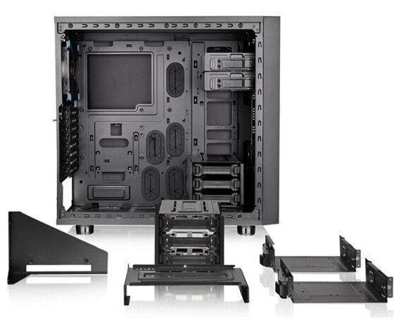 Space for one 120/140 mm fan in the front, for three 120/140 mm or two 200 mm fans on the top, for two 120/140 mm fans on the bottom; possibility of installing a 200 mm fan at the front; support for cooling radiators; 3.5 bays compatible with carriers