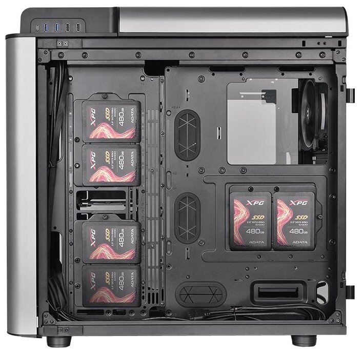 Ability to install up to 10 2.5 media; space for three 120/140 mm or two 200 mm - front and top and two 120 mm - bottom; support for cooling radiators