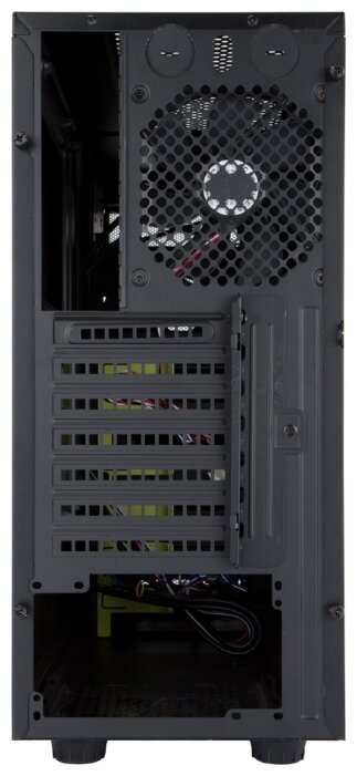 1 USB 2.0 port; places for 120 mm fans, two in front, top and side; screwless mounting of 5.25 devices