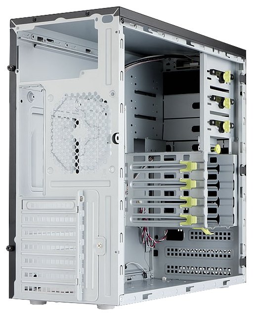 Space for 120mm fan front and rear; it is possible to install one 2.5 device instead of 3.5