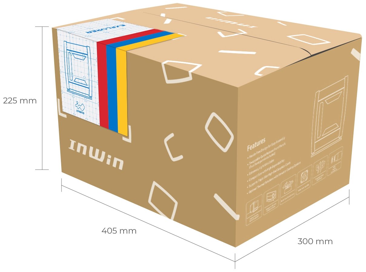 Size: Mini-Tower, motherboard form factor: Mini-ITX, window on the side wall, number of internal bays 3.5: 1, number of internal bays 2.5: 2, USB 3.0 on the front panel, USB Type-C on the front panel, width: 285 mm, height: 30