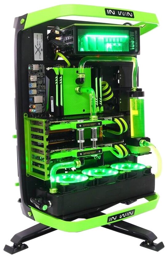 Support for cooling radiators; 3.5 bays are compatible with 2.5 media; space for three 120 mm fans on the side