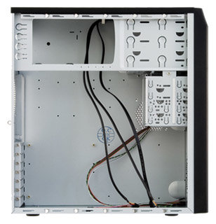 On the front panel there is space for a 92x92mm or 120x120mm fan; screwless mounting of 5.25 devices
