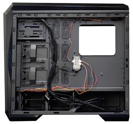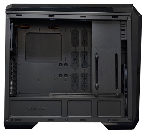 Screwless mounting for 3.5/2.5" devices; support for cooling radiators; space for two 120/180 mm fans on top; multi-colored front panel backlight