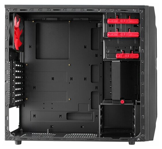 Space for a 120 mm fan, one at the front, bottom and inside, two at the side