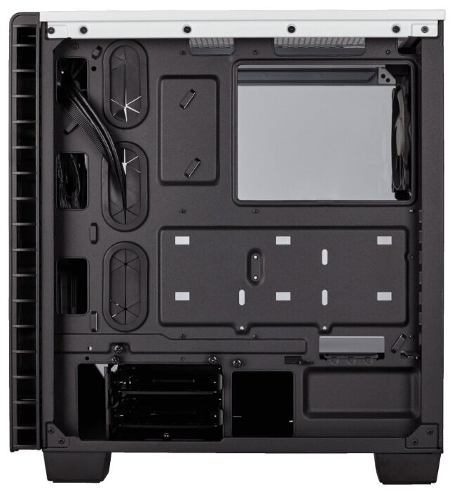 Support for cooling radiators; space for a second 140 mm fan in the front and for two 120/140 mm fans on the top; hinged side covers