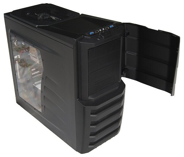 Space for one 200 mm fan or two 120 mm fans on top; screwless mounting in 5.25 bays; one external 3.5 bay converts from a 5.25 bay