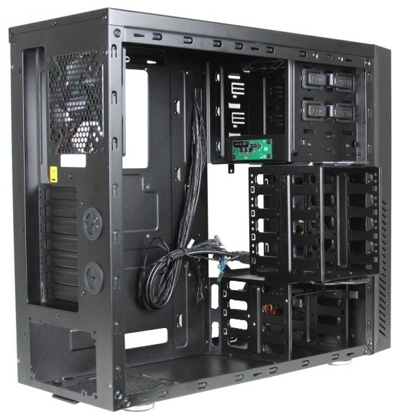 HDD docking station with hot-swappable 3.5 SATA hard drives; one 5.25 bay is occupied by hot-swappable SATA HDDs; the ability to install a 140 mm fan instead of 120 mm on the front panel or an additional 120 mm fan