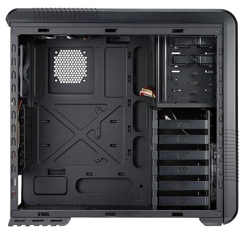 Space for one 120/140 mm fan on the left and two on top, two 120 mm fans on the bottom and one on the HDD cage; Screwless mounting in 5.25" bays