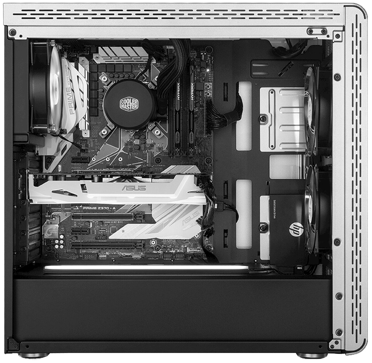 Space for two 120/140 mm fans in the front; radiator support