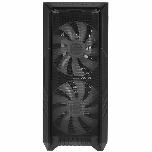 Fan installation options: front - 3x120 mm / 2x140 mm / 2x200 mm, top - 3x120 mm / 2x140 mm / 2x200 mm, rear - 1x120 mm, on the hard drive cage - 1x120 mm