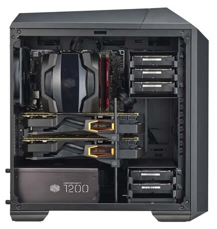 Space for two 120/140 mm fans on top and one 140 mm fan on the front; radiator support