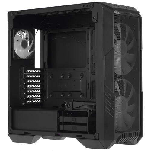 Fan installation options: front - 3x120 mm / 2x140 mm / 2x200 mm, top - 3x120 mm / 2x140 mm / 2x200 mm, rear - 1x120 mm, on the hard drive cage - 1x120 mm
