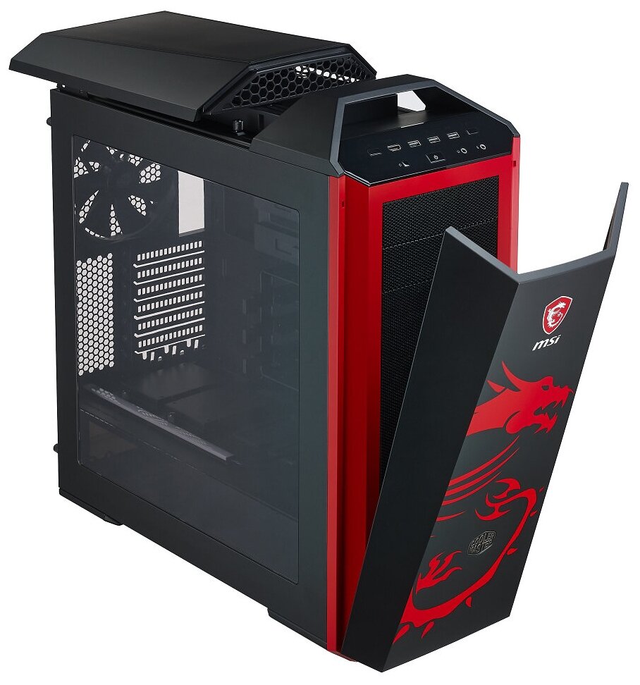 Front HDMI port; 3.5" bays are compatible with 2.5" media; space for two 120/140 mm fans on top; radiator support