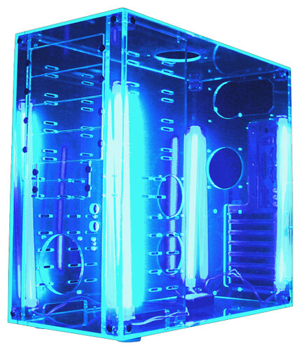 Size: Midi-Tower, motherboard form factor: ATX, number of internal bays 3.5: 5, width: 200 mm, height: 425 mm, depth: 465 mm, case color: transparent